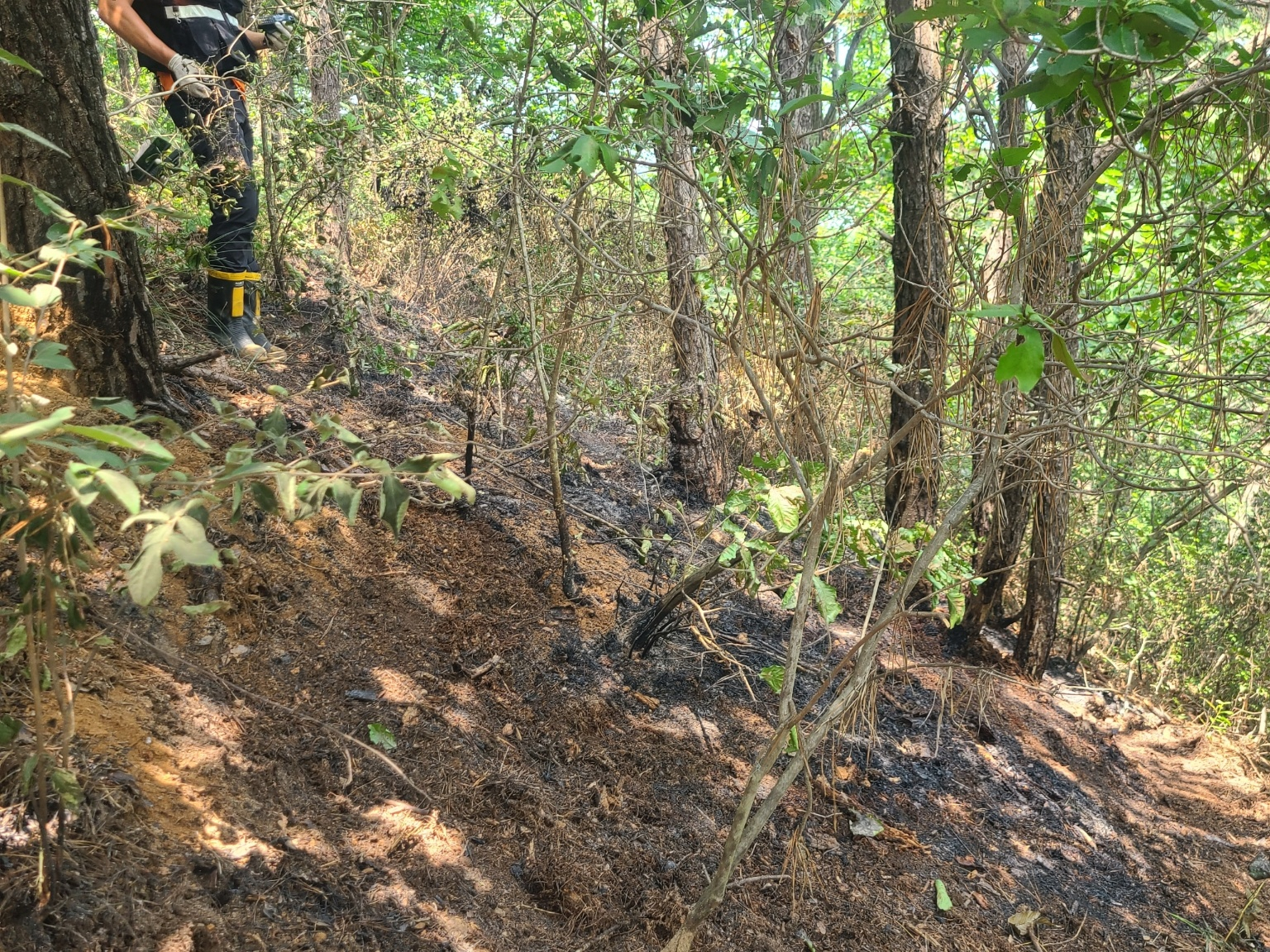 The blaze was reported around 11:45 a.m. on Monday on a hill near the border, according to the Korea Forest Service and local fire authorities. Ten fire trucks and 36 personnel were dispatched, and the fire was extinguished within 23 minutes. Approximately 10 square meters (107.6 square feet) of the hill was burned, but no casualties were reported.