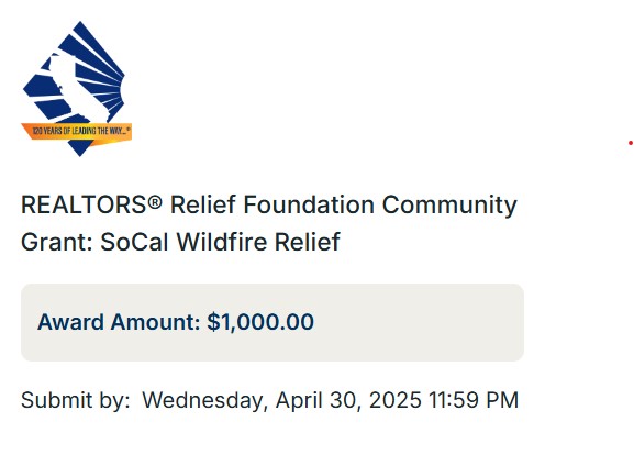 The California Association of Realtors (CAR) announced on February 10 that the Realtors Relief Foundation, established by the National Association of Realtors (NAR), has donated a $1 million relief fund to assist wildfire victims with housing-related financial aid.