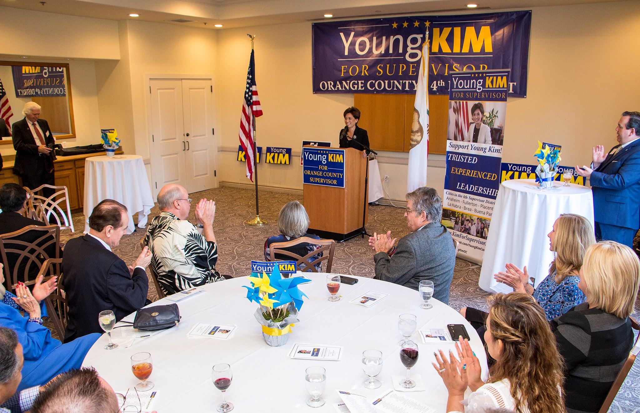 Congressman Ed Royce attended Kim’s first fundraising event, alongside Orange County Board of Supervisors vice chair Michelle Steel, Councilman Fred Whitaker and other prominent public figures from both Orange County and Los Angeles.